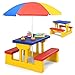 DREAMADE Kindersitzgruppe mit Sonnenschirm, Gartenmöbel für Kinder, Kinder Sitzgarnitur, Kinder Möbel Set Garten, Kinder Sitzbank draußen (Blau+Rot+Gelb)